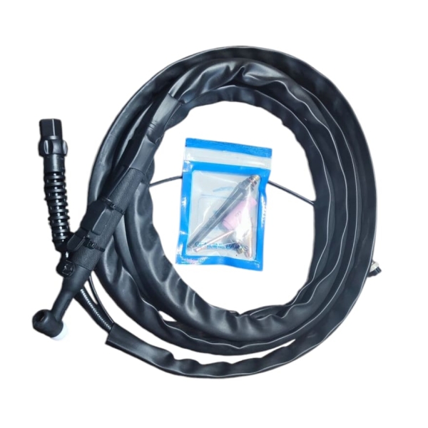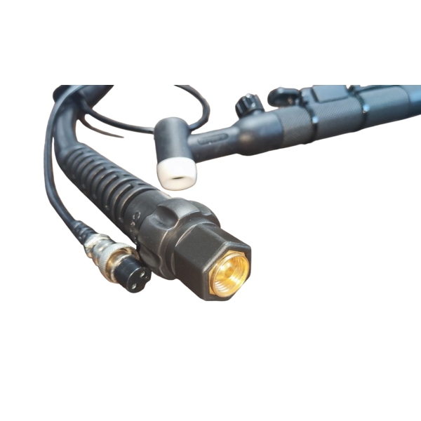 Pistola tig wp-26 (200 amp) sin valvula de gas, con gatillo para equipo de soldar con alta frecuencia (hf) y control de gas por valvula solenoide, Conexion tuerca M16mm o 5/8. largo 4 metros. con kit de accesorios incluidos.
